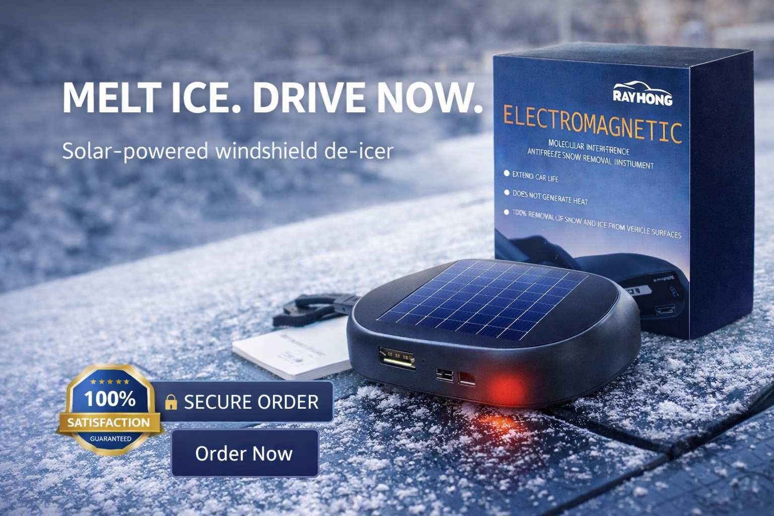 This solar-powered car defroster provides an eco-friendly and energy-saving solution with zero emissions and no need for traditional power sources. It automatically detects temperature changes and activates defrosting when needed for hands-free convenience. Using efficient electromagnetic technology, it quickly removes snow and frost to improve winter driving visibility and safety. Designed for wide compatibility, it works on both front and rear windshields of cars, SUVs, and trucks. Built for durability, it performs reliably in harsh winter conditions and strong sunlight.